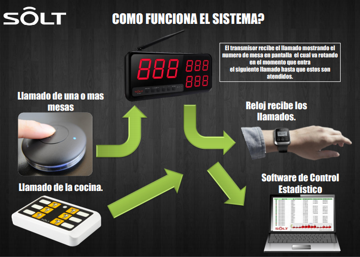 Solt es un sistema inalámbrico de localización en sitio con múltiples aplicaciones para la industria, que permite reducir y llevar un control de los tiempos de respuesta y así maximizar la atención a los llamados de los clientes o usuarios.