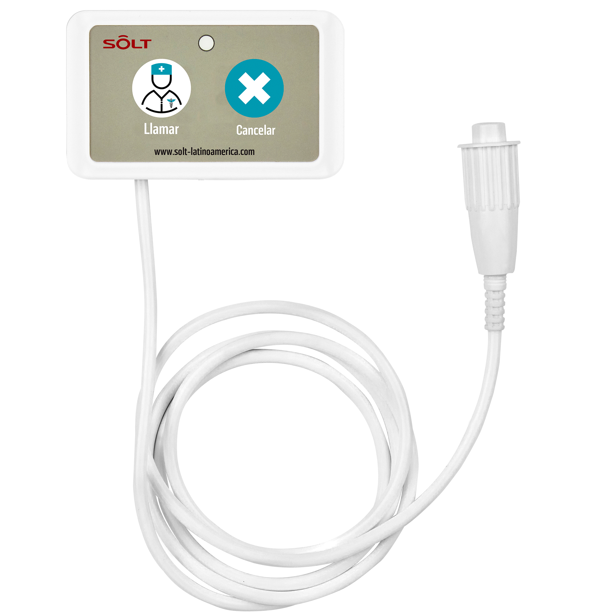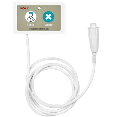 Este botón inalámbrico es lo mas reciente en tecnología de localización hospitalaria, cuenta con una interfaz desmontable para conectar un elemento de presión externo, el cual se puede extender a la longitud deseada.