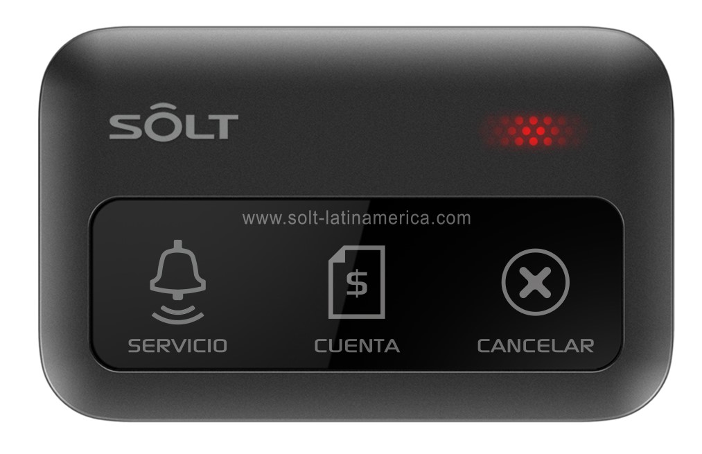 - Nuestros botones multifunción de la serie SB9 están equipados con 3 teclas de función asignada, la primera tecla permite solicitar servicio al camarero asignado, con la segunda tecla el cliente puede solicitar la cuenta y la tercera tecla es para cancelación de llamados y toma de tiempo de respuesta.